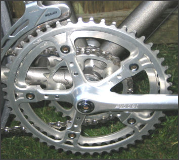 them. Gearing is 52/47/28 half-step plus granny. The larger chainwheels